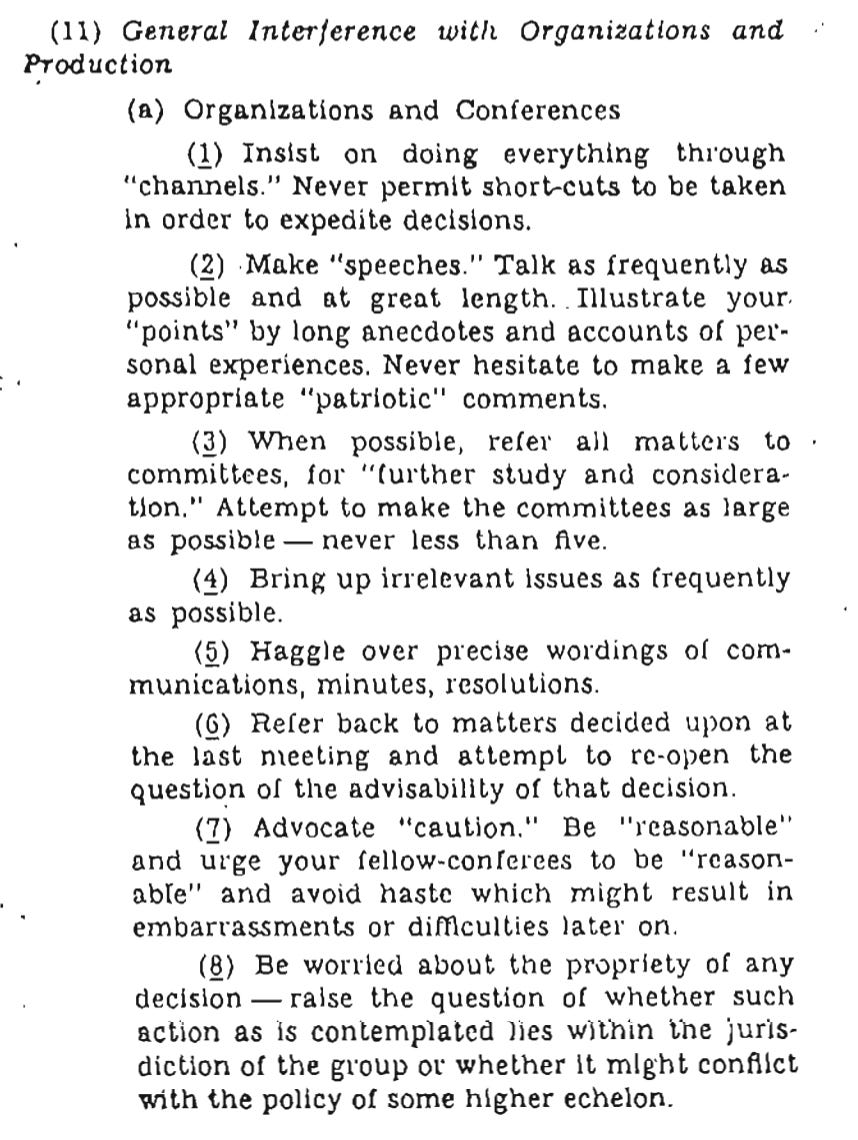 Almost everyone who has worked in an office setting of nearly any size has a pretty good sense of how this works. It's why Dilbert comics and the Office are so relatable4. It seeps in from nowhere in particular and has a gravity that is hard to escape. But at least if we start to recognise it for what it is we can make progress.